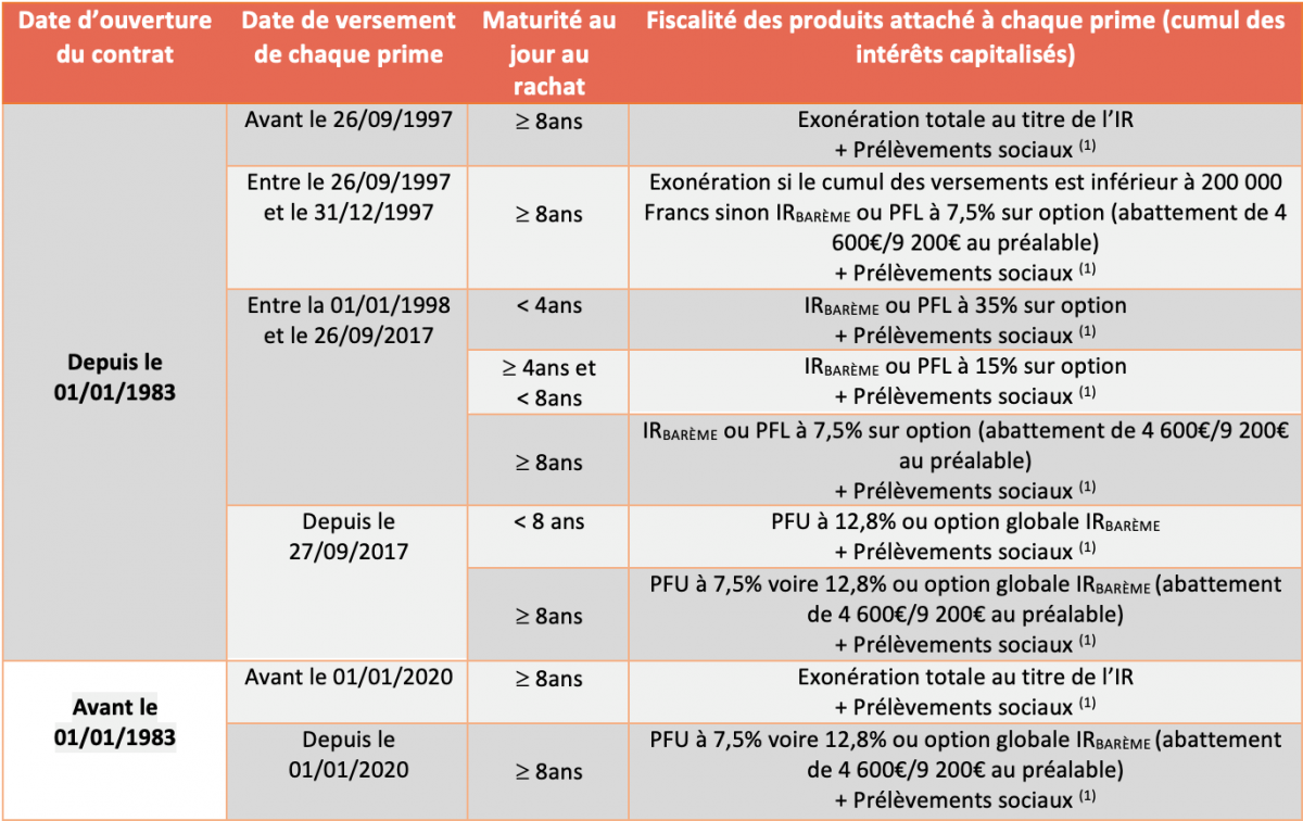 La prise de date a pour objectif d’avoir dépassé les 8 ans sur votre contrat. Sauf depuis la réforme de 2017, la fiscalité applicable au contrat et le prélèvement forfaitaire unique (voir tableau fiscalité)