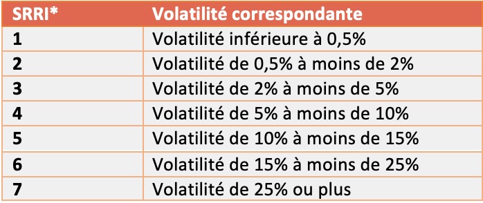 Grâce à ce tableau vous pouvez facilement trouver votre numéro de SRRI :